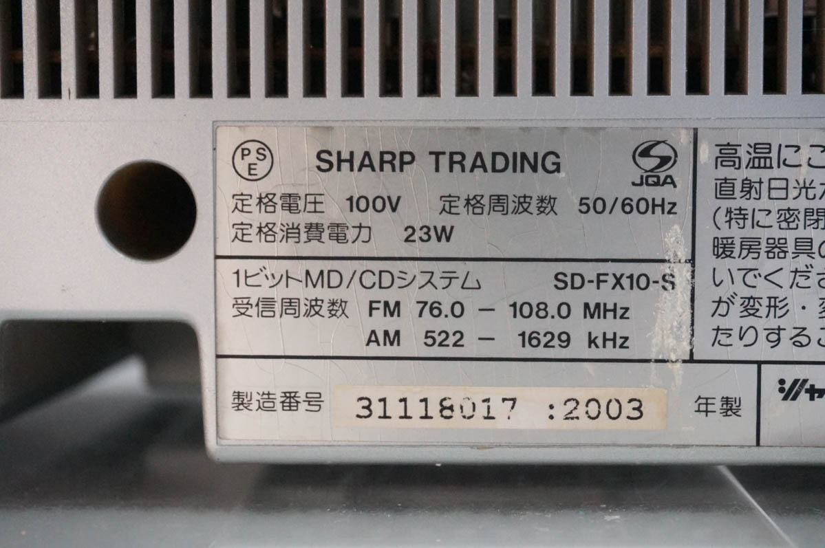 中古 C SHARPシャープ 1ビットMD/CDシステム Auvi CD/MD/ラジオ MDLP対応 SD-FX10-HA オーディオ