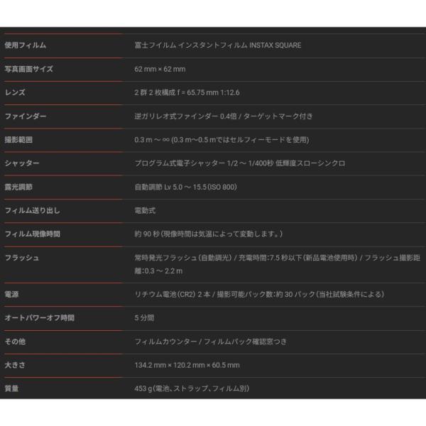 チェキスクエア インスタントカメラ instax SQUARE SQ40 FUJIFILM 富士フイルム 明るさオート セルフィーモード 自動調光 ブラック INSSQ40 ◆宅