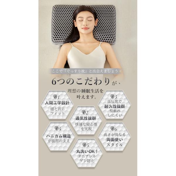 TPE枕 高反発枕 体圧分散 まくら 丸洗い 人間工学まくら 快適睡眠 快眠まくら ジェル枕 ハニカム構造 仰向け・横向き うつ伏せ対応 首肩サポート