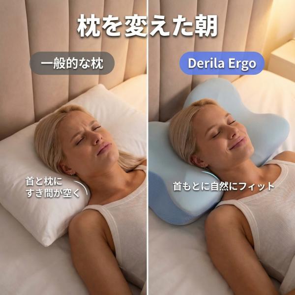 デリラ エルゴ Derila Ergo 枕 低反発 頚椎サポート 人間工学 横向き 仰向け メモリーフォーム クールカバー付 54×36cm