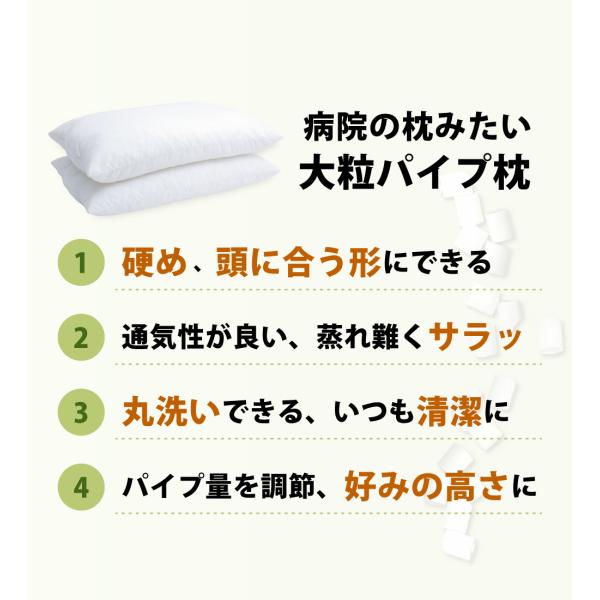 枕 ピロー パイプ カバー付き 病院枕みたい 硬め 大粒 洗える 高さ調節 35×50 日本製 ビーズ まくら マクラ パイプ枕