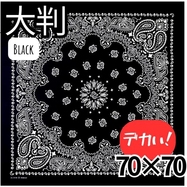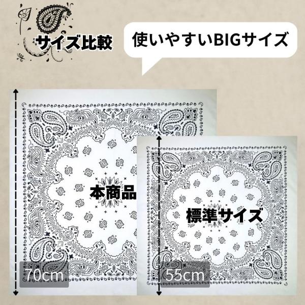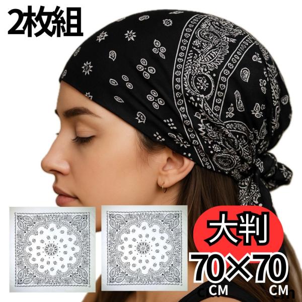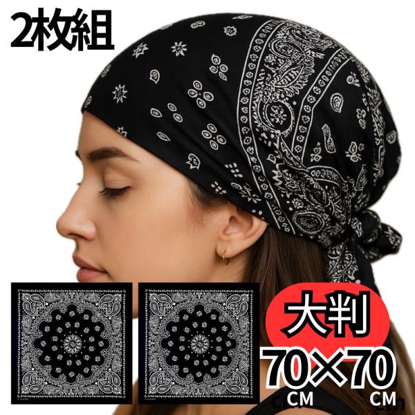 【最短当日発送】 【BIGサイズ】【大判】 バンダナ 2枚組 ペイズリー柄 70cm×70cm コットン100% ブラック ホワイト 男女兼用 スカーフ ヘアアクセ ペーズリー