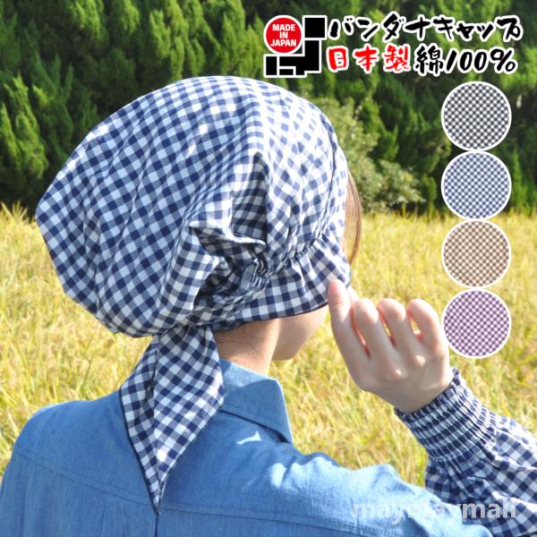 バンダナ バンダナキャップ 日本製 綿100% チェック 格子柄 デザイン おしゃれ カフェ 飲食店 ガーデニング コットン ラッピング