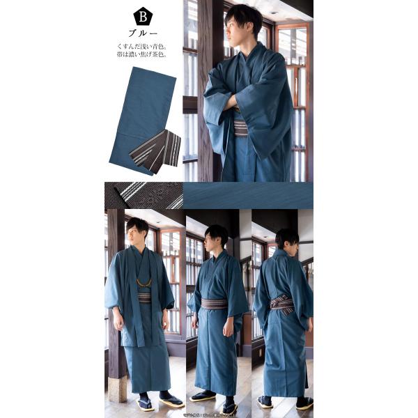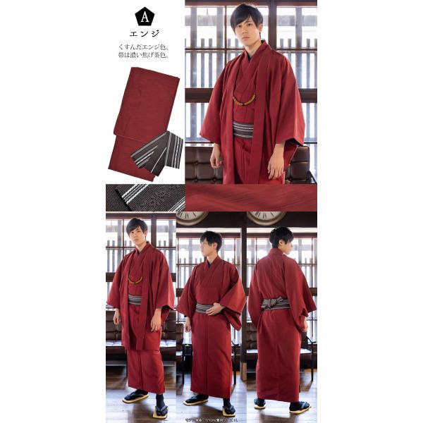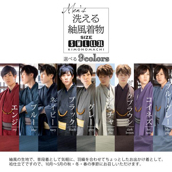 着物 男性 洗える着物 フルセット 「エンジ・ブルー・ネイビー・ブラック・グレー・シラチャ・ダークブラウン・コイネズ・ブルーグレー 全9色」(メール便不可)