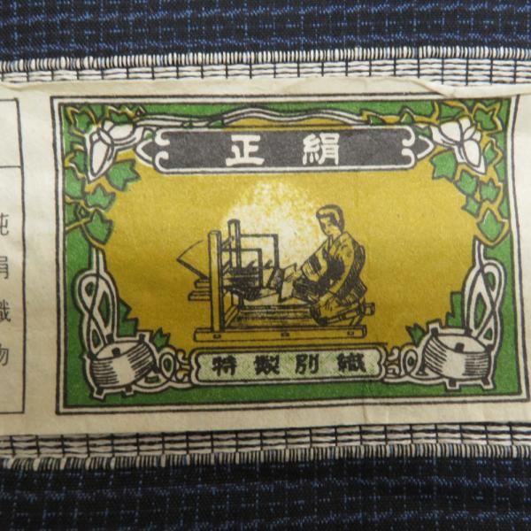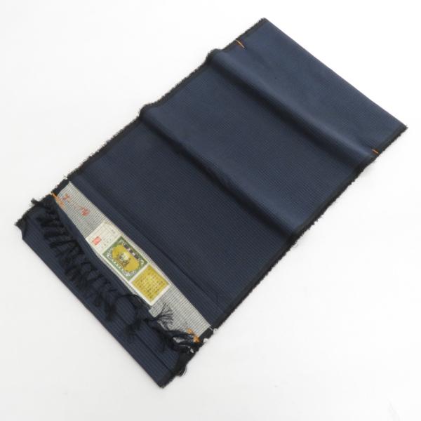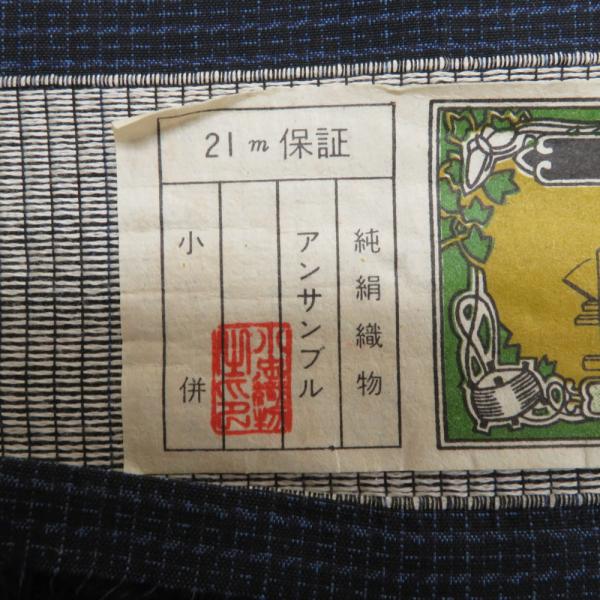 反物 男性用 紬 アンサンブル 紺色x黒色 小絣模様 正絹 糸留めあり 未仕立て 着物生地 着尺 長さ2100cm