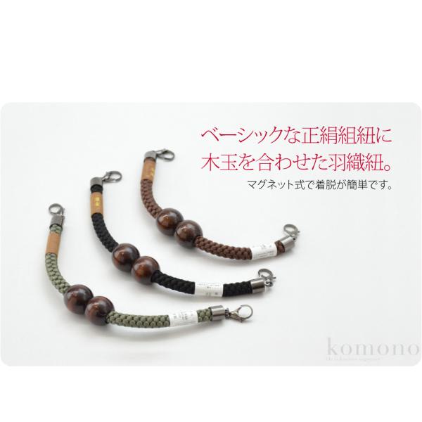 羽織紐 男性用 通年用 日本製 翠嵐工房 男物 正絹羽織紐 木玉 江戸無地 環付け式 王冠マグネット カニ管 カニカン メンズ