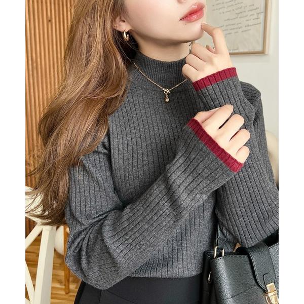 ニット セーター 「累計販売枚数7万枚突破!」12G ボトルネック配色ラインワイドリブニットプルオーバー レディース