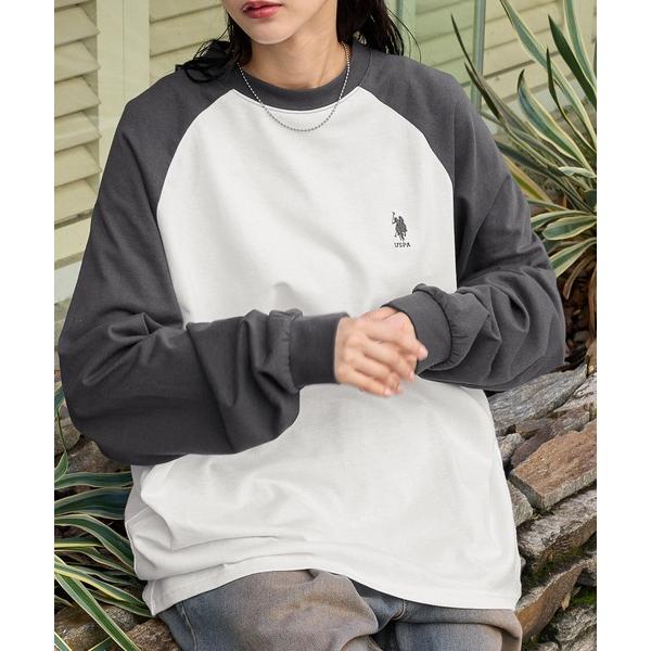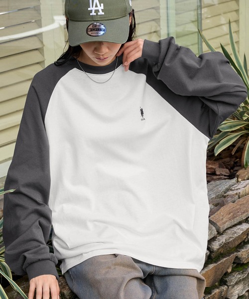 tシャツ U.S. POLO ASSN. /ユーエスポロアッスン 別注 ワンポイント刺繍 ラグラン配色オーバーサイズ長袖Tシャツ レディース メンズ