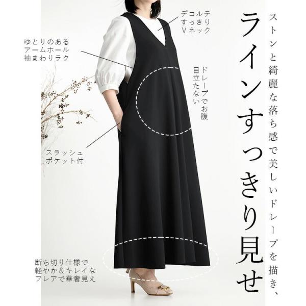 【送料無料/日本製】 きれいめジャンパースカート 洗える レディース トップス ワンピース ジャンスカ ストレッチ 体型カバー 7546