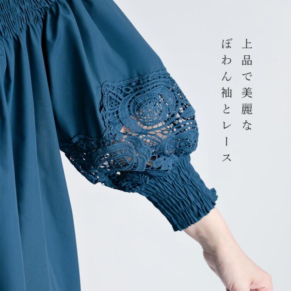 【送料無料/再入荷】 レース×シャーリングワンピース 3色 M-L 洗える 長袖 7分袖 レディースファッション トップス ワンピース Aライン レース 春夏秋