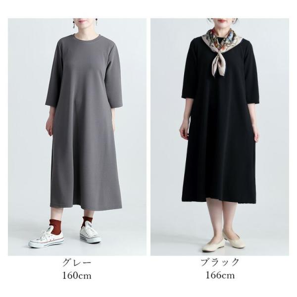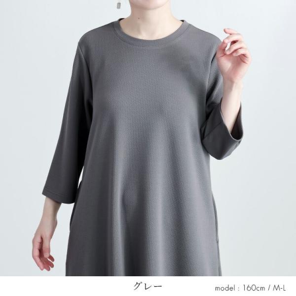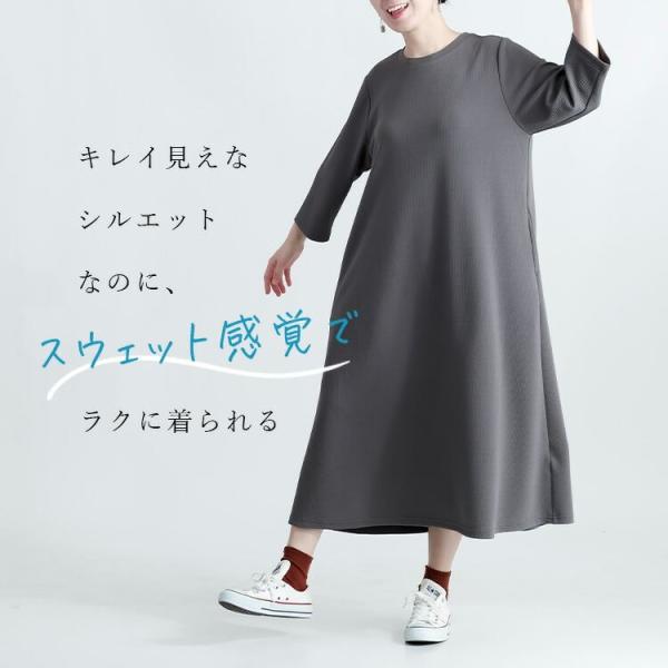 【送料無料】 スウェット感覚で着れる!エンボスワンピース 2色 M-L 洗える 防シワ 速乾 七分袖 レディース トップス ワンピース ルームウエア 春秋冬