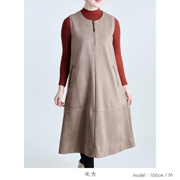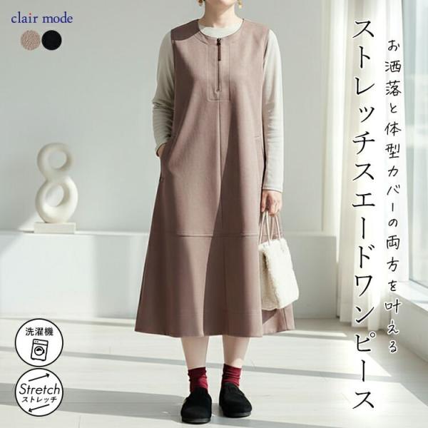 【送料無料】 ストレッチスエードジャンパースカート 2色 M L 洗える レディース トップス ボトムス ジャンパースカート ワンピース 体型カバー 春秋冬