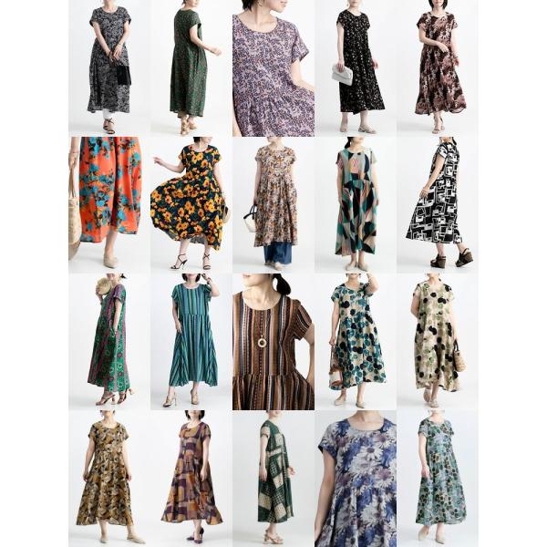 【送料無料/再入荷】 夏柄ワンピース 20柄 M L 洗える 半袖 レディースファッション トップス ワンピース 体型カバー フレア サマーワンピ リゾート気分 夏