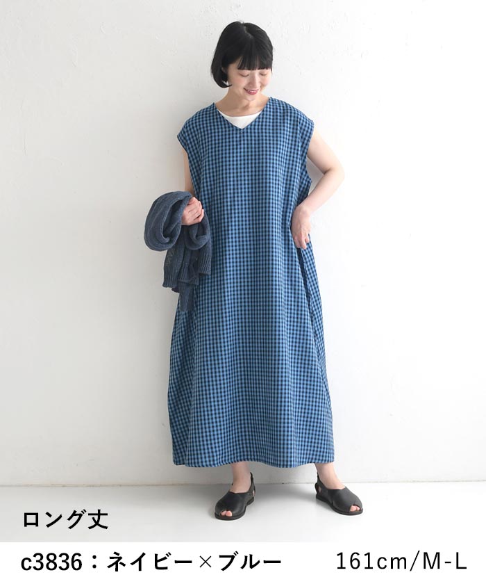 選べる着丈 ワンピース ゆったり ワイド レディース Vネック 低身長も 麻レーヨン 25AW0801,