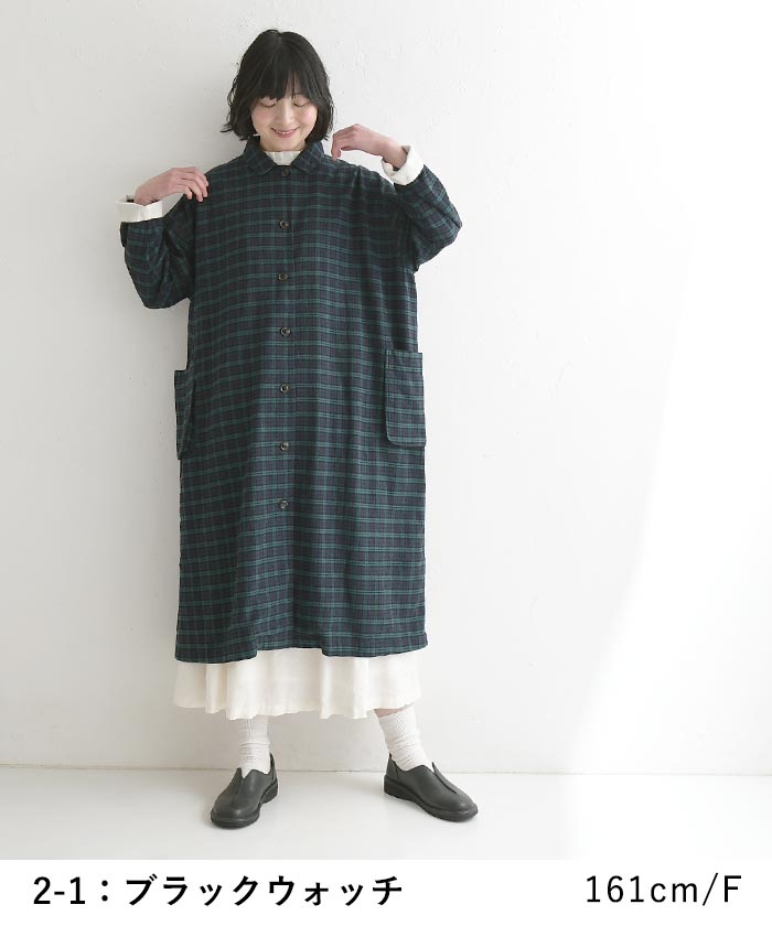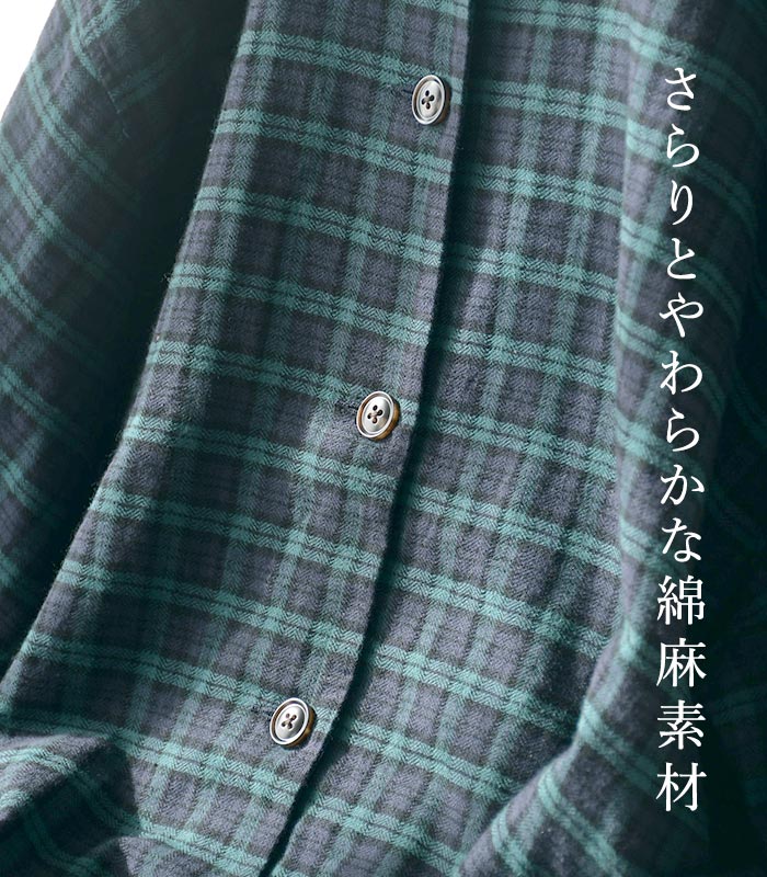コート風ワンピース 綿麻チェック柄 Bliss bunch 30代40代 エコロコ ワンピース 26SS0227, sel