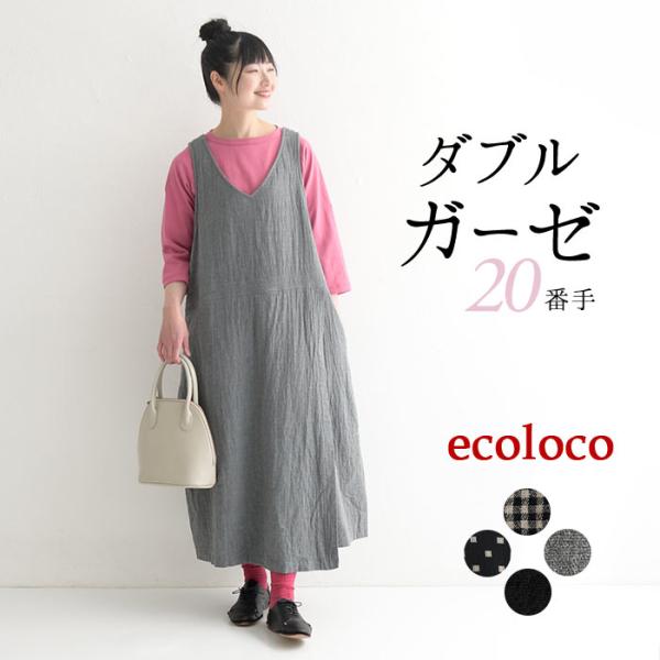 ジャンパースカート レディース ジャンスカ ワンピース ロング 20番手ダブルガーゼ 綿 25AW0829R,