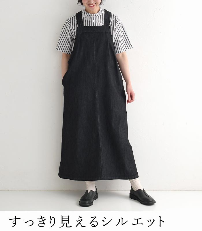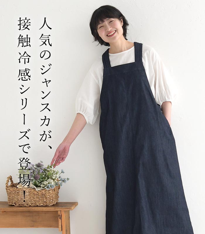 ジャンパースカート ロング レディース 接触冷感 デニム ジャンスカ ワンピース UVケア 綿100% 25SS0424,