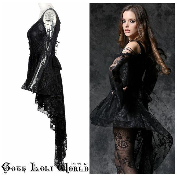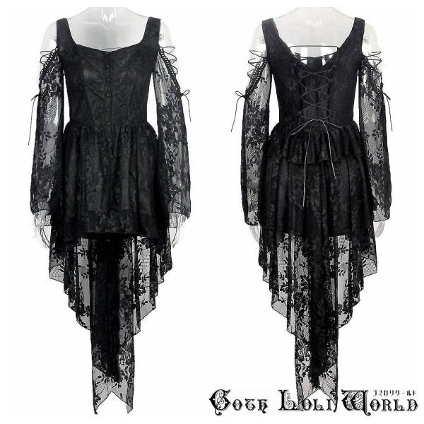 ゴスロリワールド DW053BK ゴスロリ ファッション 肩開きテールカット ワンピース ドレス ブラック 黒色 レディース ゴシック ロリィタ ロリータ 地雷系