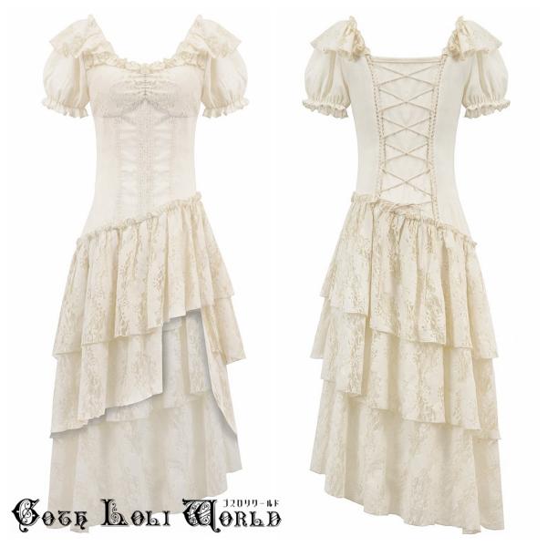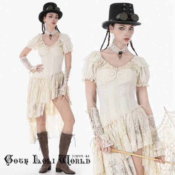 ゴスロリワールド DW1157 スチームパンク ファッション アシンメトリーデザイン ベージュ色 ワンピース ドレス ゴシック ゴスロリ ライブ衣装 イベント衣装