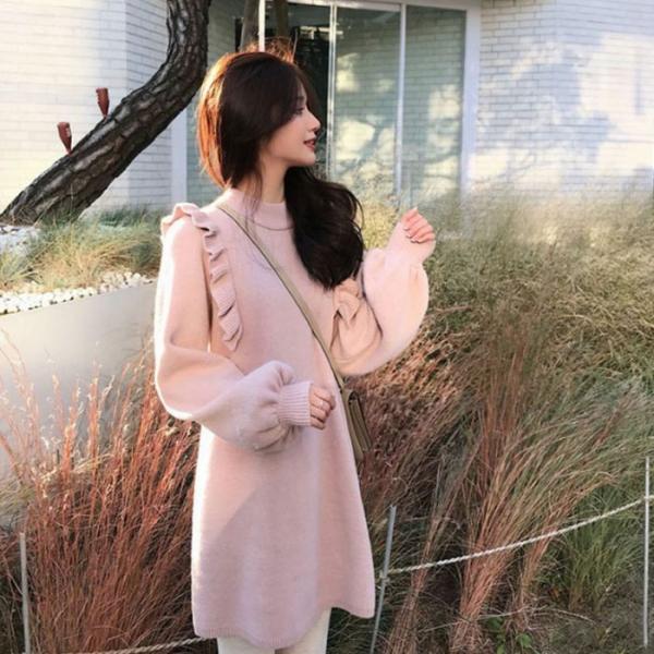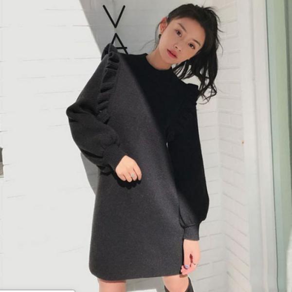 ワンピース ショート丈 ショート 長袖 ボリューム袖 フリル 可愛い オシャレ ガーリー フェミニン トレンド 春 春服 送料無料