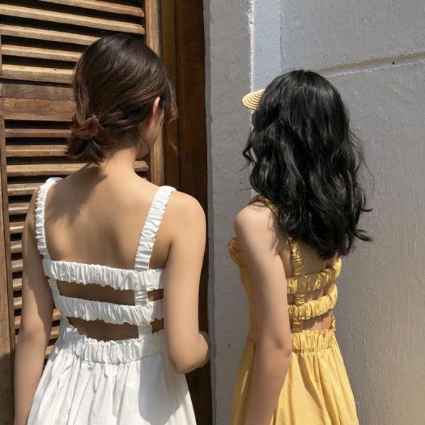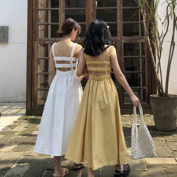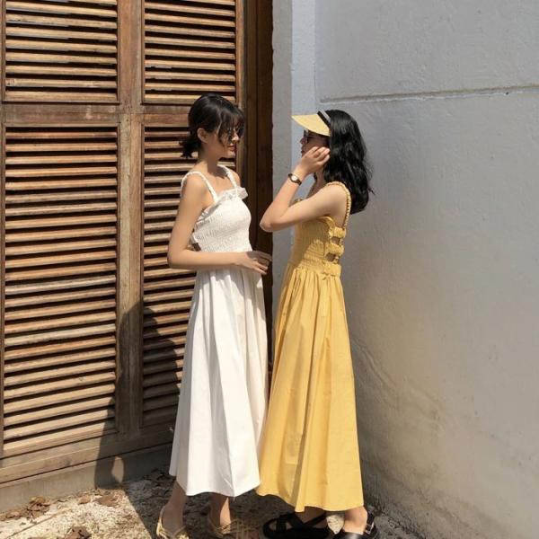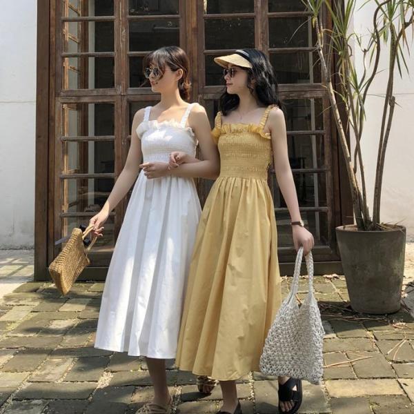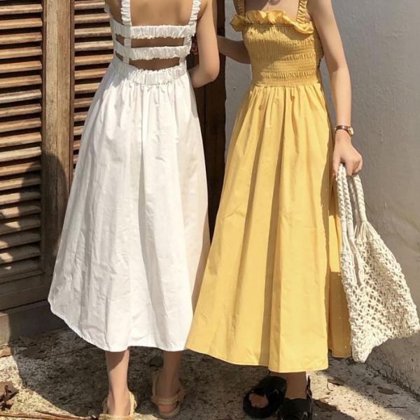 ワンピース キャミワンピース ミモレ丈 ノースリーブ フレア Aライン シャーリング ギャザー ガーリー 可愛い 送料無料