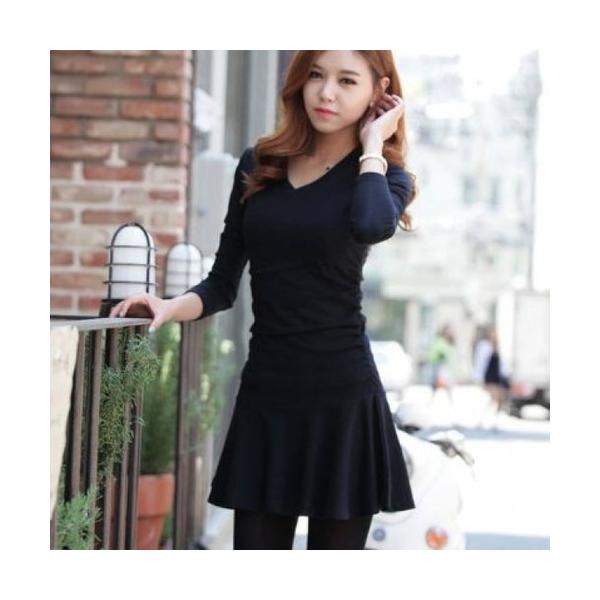 ワンピース 長袖 レディース 大人 Vネック タイト ミニ 秋 冬 無地 セクシー 送料無料