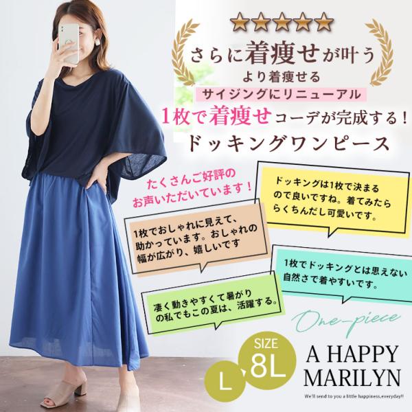 大きいサイズ レディース ワンピース リニューアル 360度完璧シルエット ブラウジングスタイル 優秀 ドッキングワンピース オリジナル ワンピ LL 3L 4L A