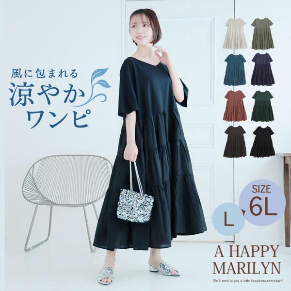 大きいサイズ レディース ワンピース 風通るクラシック ドッキング ティアード ワンピース ワンピ デザインワンピ LL 3L 4L 5L 6L 半袖 五分袖 夏 A
