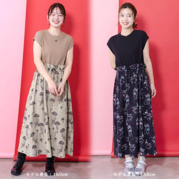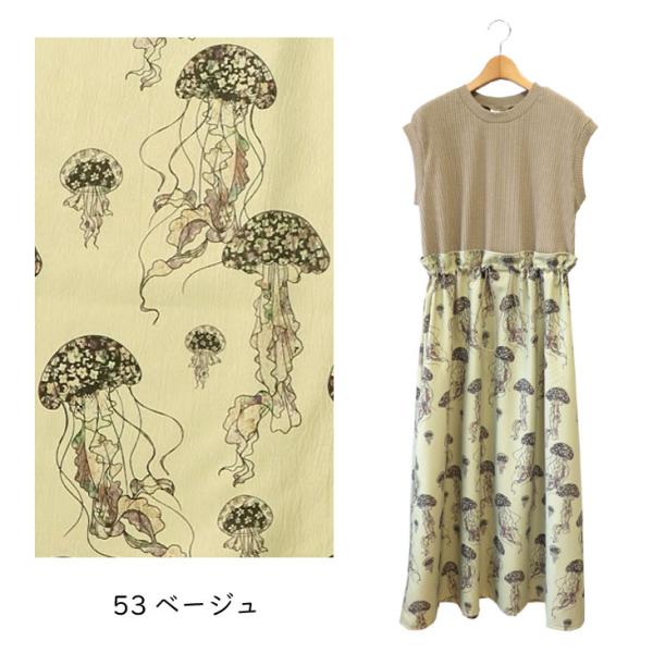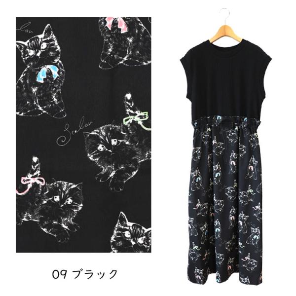 ScoLar スカラー ノースリーブワンピース ネコorクラゲ柄×テレコ素材 レトロ POP かわいい 軽い スカート 女性 レディース 個性的 トップス 春夏秋冬 おしゃれ