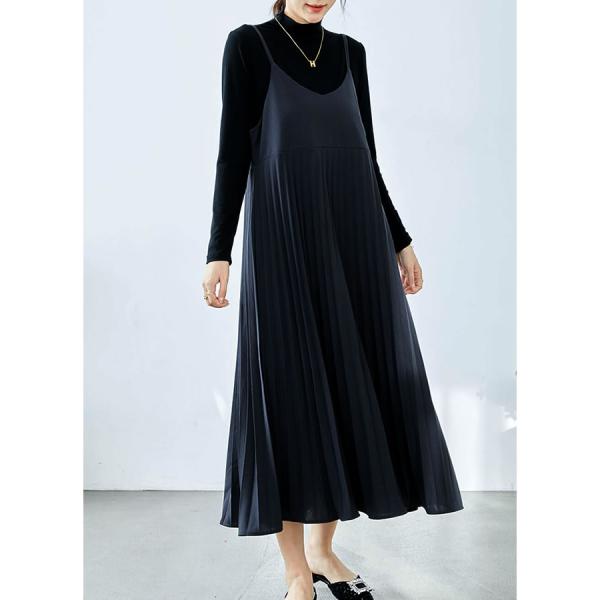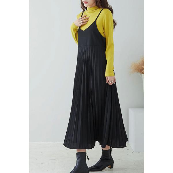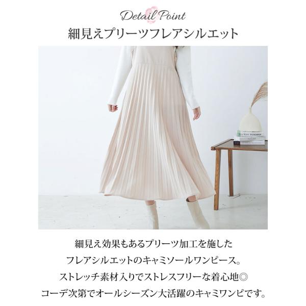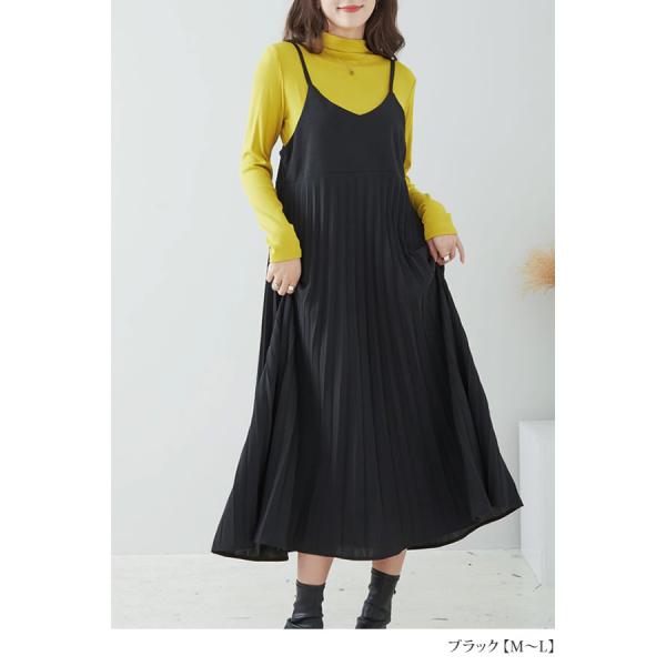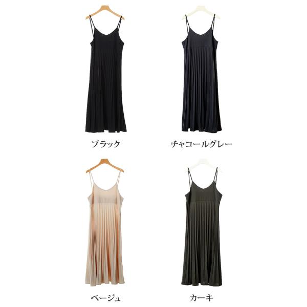 レディース キャミワンピース プリーツ キャミワンピ フレア ロング ストレッチ ノースリーブ Vネック Aライン 春 夏 秋 冬 レイヤード 定番