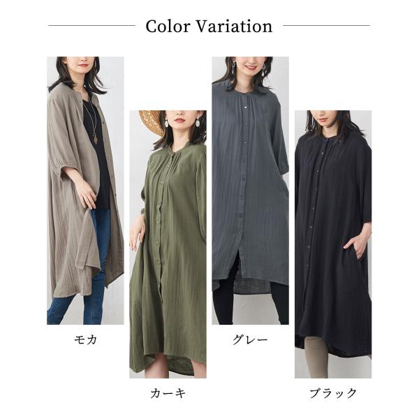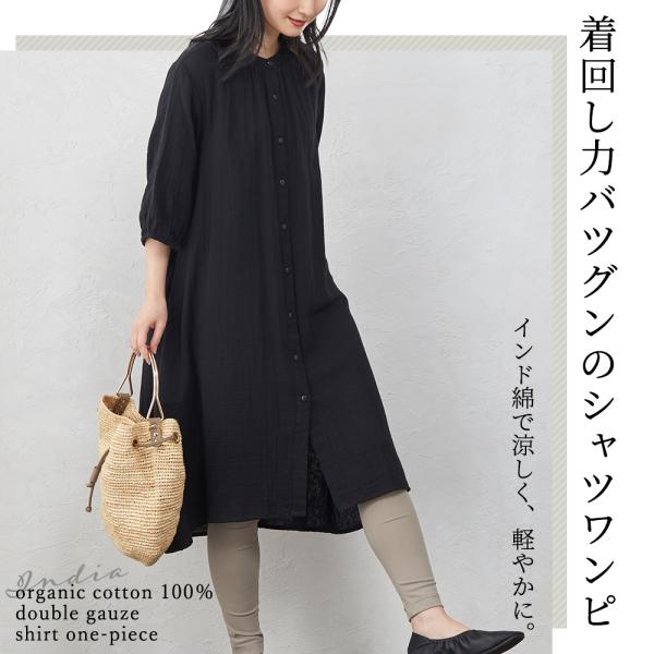 オーガニックコットン ダブルガーゼ ワンピース ロングシャツ シャツワンピース ロングブラウス インド綿 綿100%