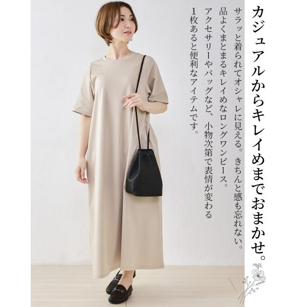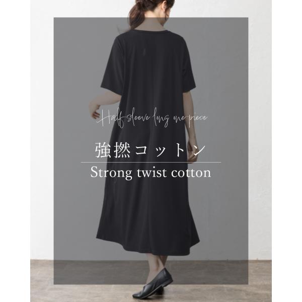 強撚コットン ロングワンピース 日本製 ワンピース レイヤード ロングワンピ フレア Aライン 半袖 無地 重ね着 きれいめ 上品 レディース 綿100%