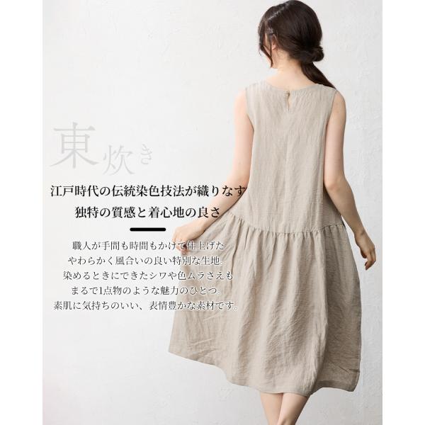 ワンピース レディース 東炊き リネン 麻 日本製 ロングワンピース ノースリーブ ジャンパースカート ジャンスカ レイヤード スリーブレス 速乾 夏 春 秋