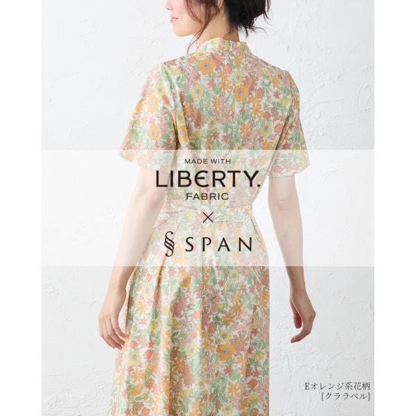 リバティ タナローン ワンピース レディース ベルト付き 大人 ロング丈 ロングワンピース シャツワンピース 大人 綿 きれいめ 半袖 aライン 30代 40代 50代