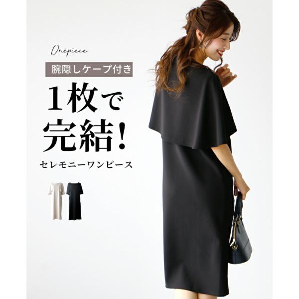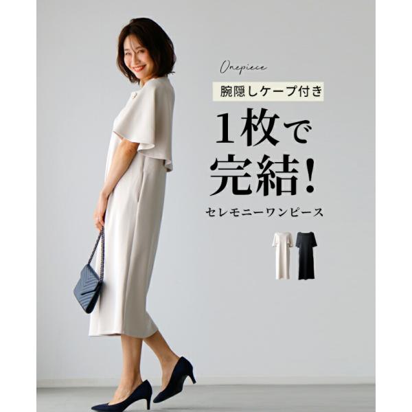 ワンピース フォーマル ノースリーブ ケープ 腕隠しケープ ドッキング セレモニー 服 ポンチ素材 Iライン【S240812】