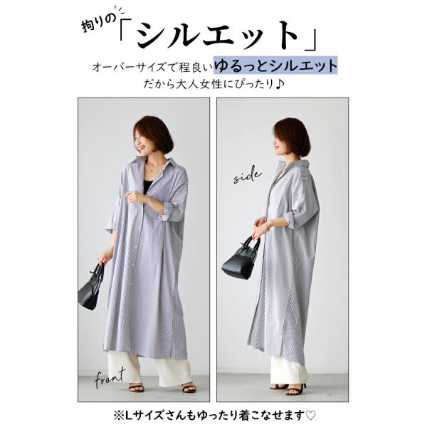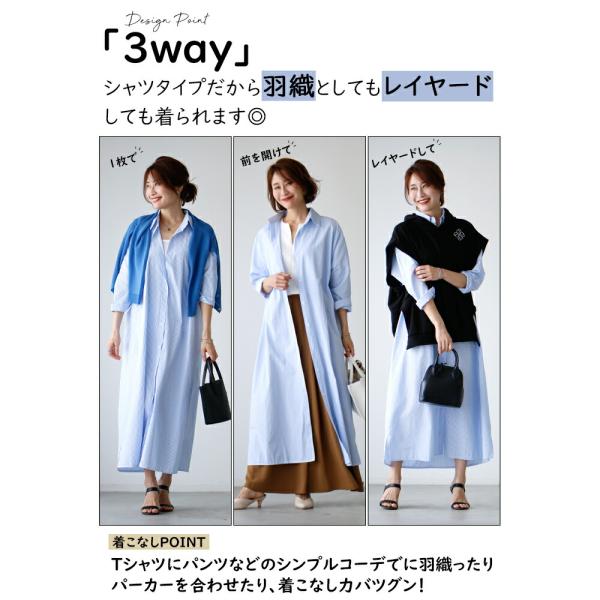ワンピース ストライプ ロング ロングワンピ ロングシャツ シャツワンピ ブラック Black 黒 ブルー Blue 青