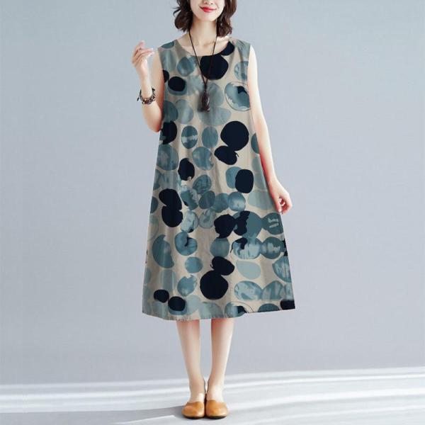 ワンピース レディース 韓国ファッション夏 半袖ワンピ ロングワンピース フレアワンピースノースリーブ 夏用 ドット柄 水玉 aライン raimu