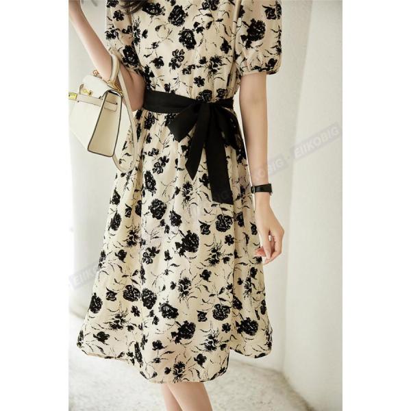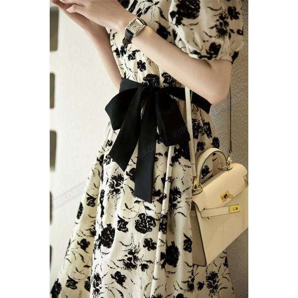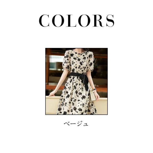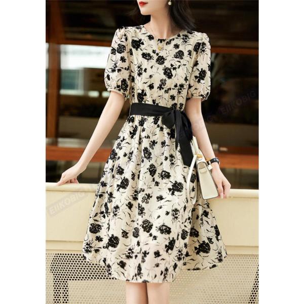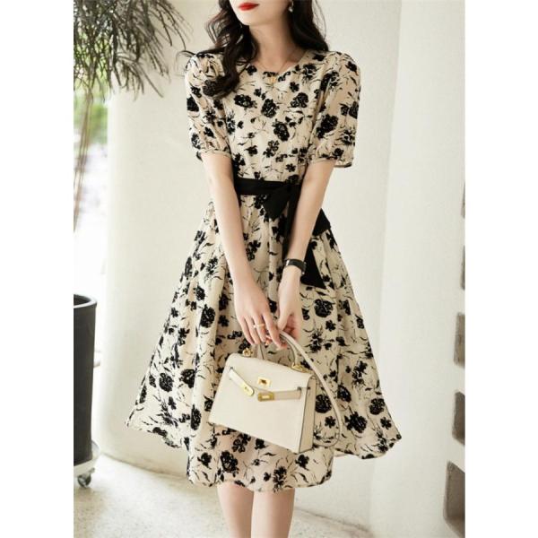 ワンピース レディース 40代 きれいめ 膝丈 夏 半袖 花柄プリントリボン Aラインスカート オシャレ韓国風 大人ゆったり 結婚式ドレス