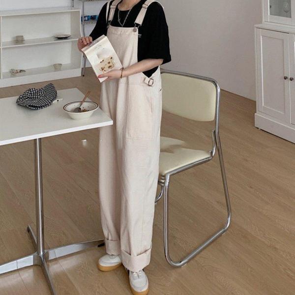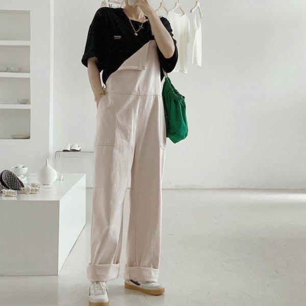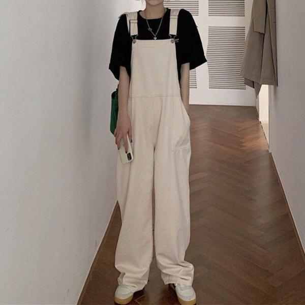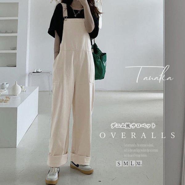 サロペット オーバーオール パンツ レディースロング丈 ワイドパンツ 春夏 ホワイト 白 おしゃれ ロングズボン 大きいサイズ サロペット 着痩せ