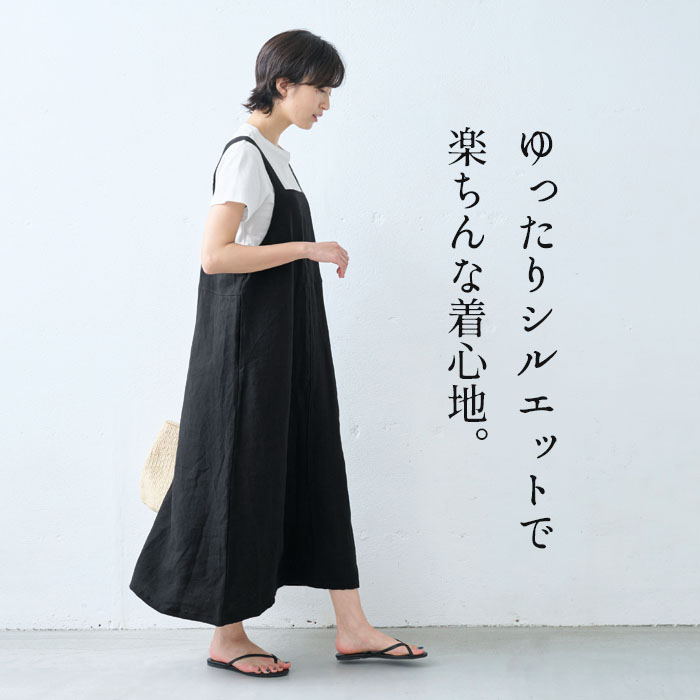 ワンピース レディース リネン 40代 50代 40番手 フレンチリネン100% エプロン ジャンパースカート 日本製 レディースワンピース ジャンスカ