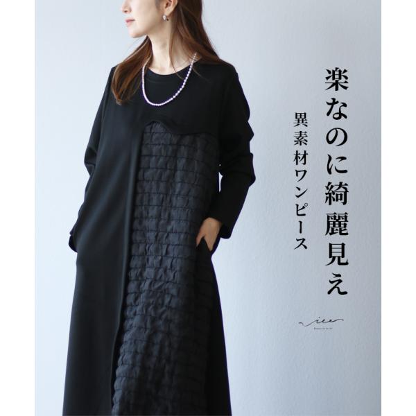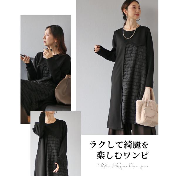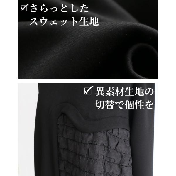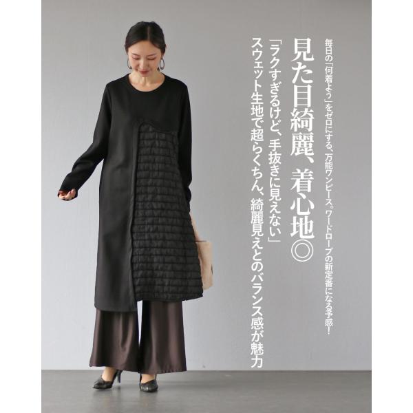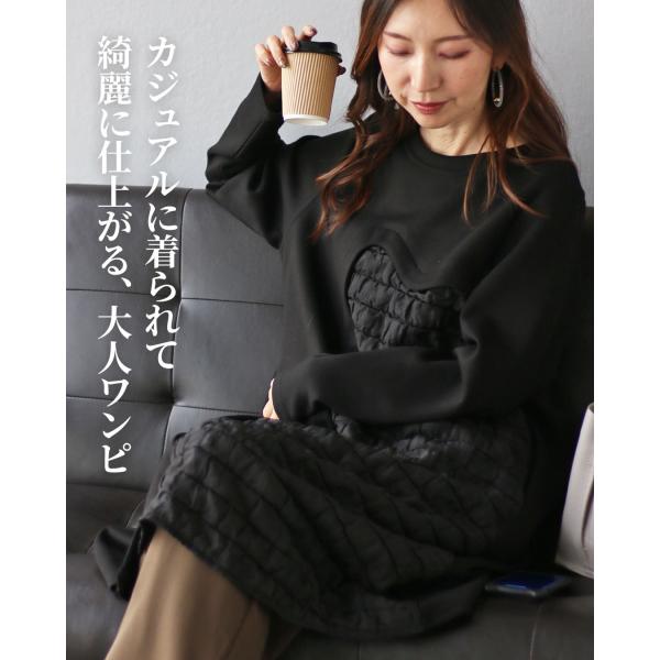 ワンピース ワンピ スウェット チュニック 上品 レディース 女性 ミセス 婦人服 服 ファッション Vieo ヴィオ 40代 50代 60代 黒 ブラック 長袖
