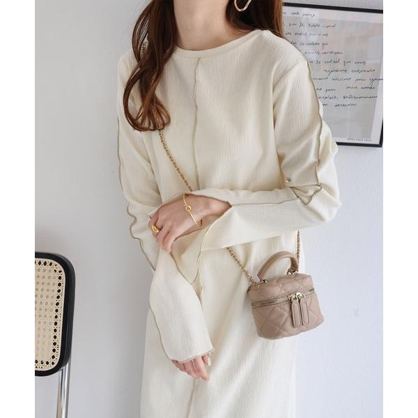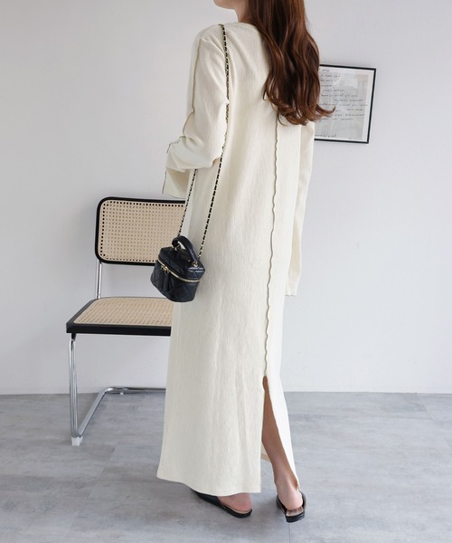 ワンピース 楊柳配色メロー長袖ワンピース