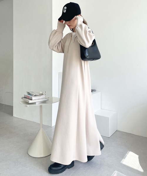 ワンピース 「全骨格細見え/低身長サイズ有」すっきり見せ!前後2WAYハーフジップワンピース