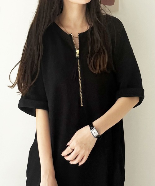 ワンピース 前後2WAYハーフジップTシャツワンピース