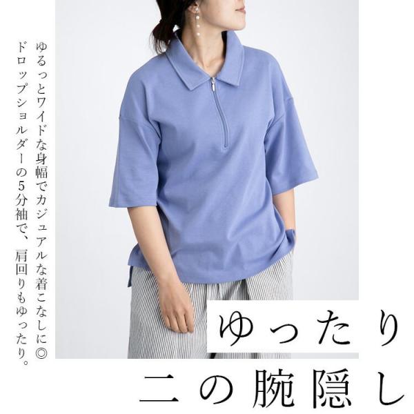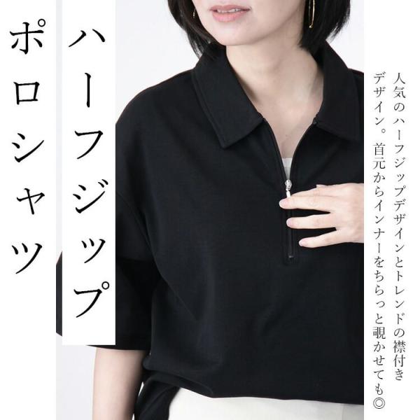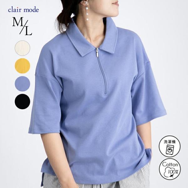 【送料無料/再入荷】ハーフジップポロシャツ 4色 M-L 洗える 半袖 レディース トップス ポロシャツ カットソー