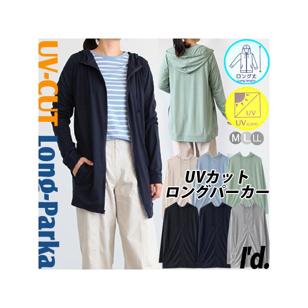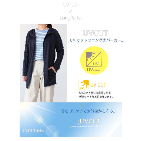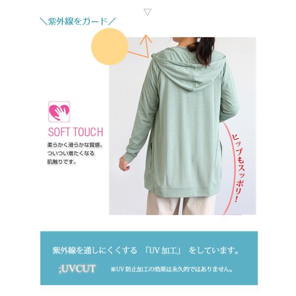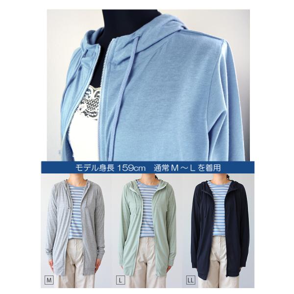 今期入荷 紫外線 UVカット 加工 綿混ソフト ロング丈 ジップアップ パーカー ロングパーカー レディース 春 夏 秋 紫外線カット M・L・LLサイズ 6401