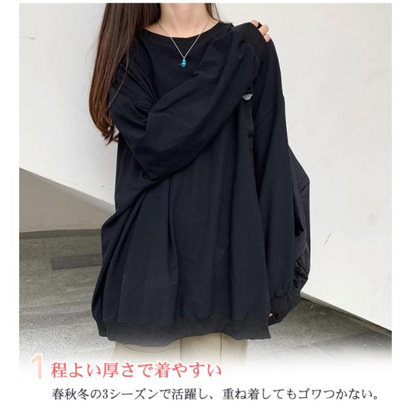 トレーナー スウェット レディース パーカー Tシャツ トップス プルオーバー 長袖 体型カバー 春 夏 秋 クルーネック 薄手 シンプル 無地 爆買