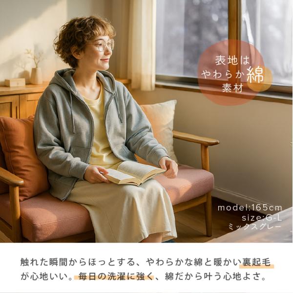 裏起毛パーカー レディース あったか 秋冬 厚手 暖かい あたたかい 防寒 部屋着 ルームウェア ふわふわ かわいい フルジップパーカー 5762