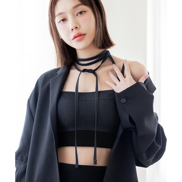 チューブトップ ベアトップ チョーカー付きデニムモーニングルーティンハーフトップ