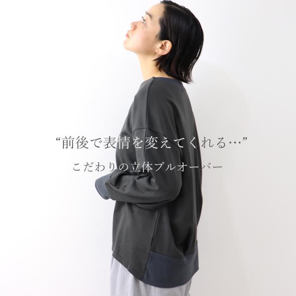 レディース 無地 harmonieアルモニ 裏毛フライス切り替えバックタック・プルオーバー 62370300 日本製 綿100 トレーナー ゆったり 大きいサイズ ブランド